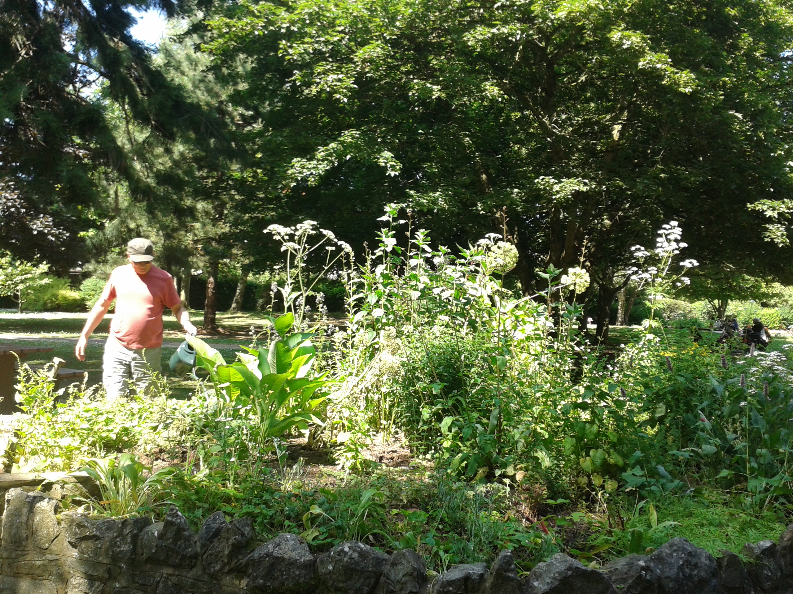 We also look after a site in Vivary Park, where the aviary used to be.  Vicky Briggs is our head gardener on that project and the bed is fantastic – a wild and woolly mix of medicinal and herbal perennials, making that corner of the park, with its trees and rough grass along the edge of the lake feel very natural.