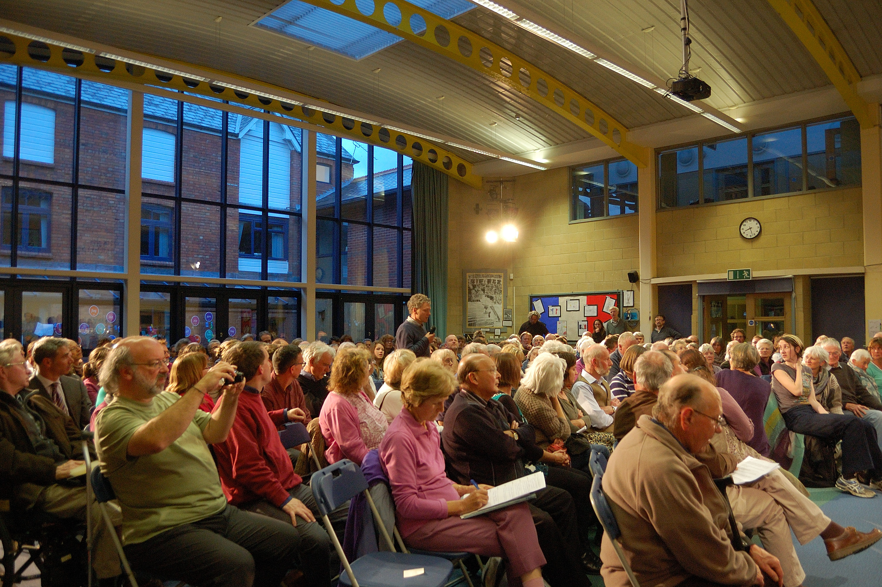 For what is believed to be one of only a handful of hustings organised specifically on the theme of climate change across the country there was an excellent turn out of around 200 people. The six candidates – Rebecca Pow (conservative), Clive Martin (Green Party), Mike Rigby (Independent), Neil Guild (Labour), Rachel Gilmour (Liberal Democrat) and Laura Bailhache (UKIP) – were each asked why they considered themselves to be the best candidate to tackle climate change. There was a near unanimous view that climate change is a serious issue with only the UKIP candidate suggesting that the threat is exaggerated.