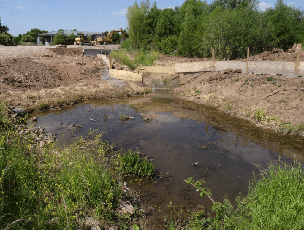 The civil engineering works conducted for improvements to J25/A358 has likely had negative impacts on local otter populations, both temporary during construction and perhaps in the longer term. Otters are present in the River Tone and its tributaries and are known to travel along streams such as the Broughton Brook and Black Brook which meet next to the M5 and then flow down to the River Tone right under the new road development at J25. I personally have seen an otter feeding on sticklebacks in a tiny culvert stream in lower Henlade, another small tributary stream that flows down to J25. Thus, it should be beholden on the road developers not to disturb, harm or otherwise block the movements of this protected mammal species. Hence, I was surprised to find in May 2020 a wire mesh screen with surrounding wooden boards blocking the Henlade stream that in the face of it, would block otters moving along the stream channel.