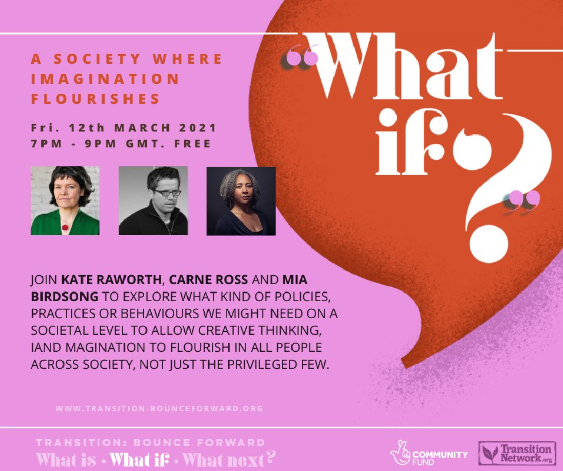 A society where imagination flourishes… with Kate Raworth and others. One of the many inspiring FREE sessions coming up at the What Next? Summit 3rd- 21st March.