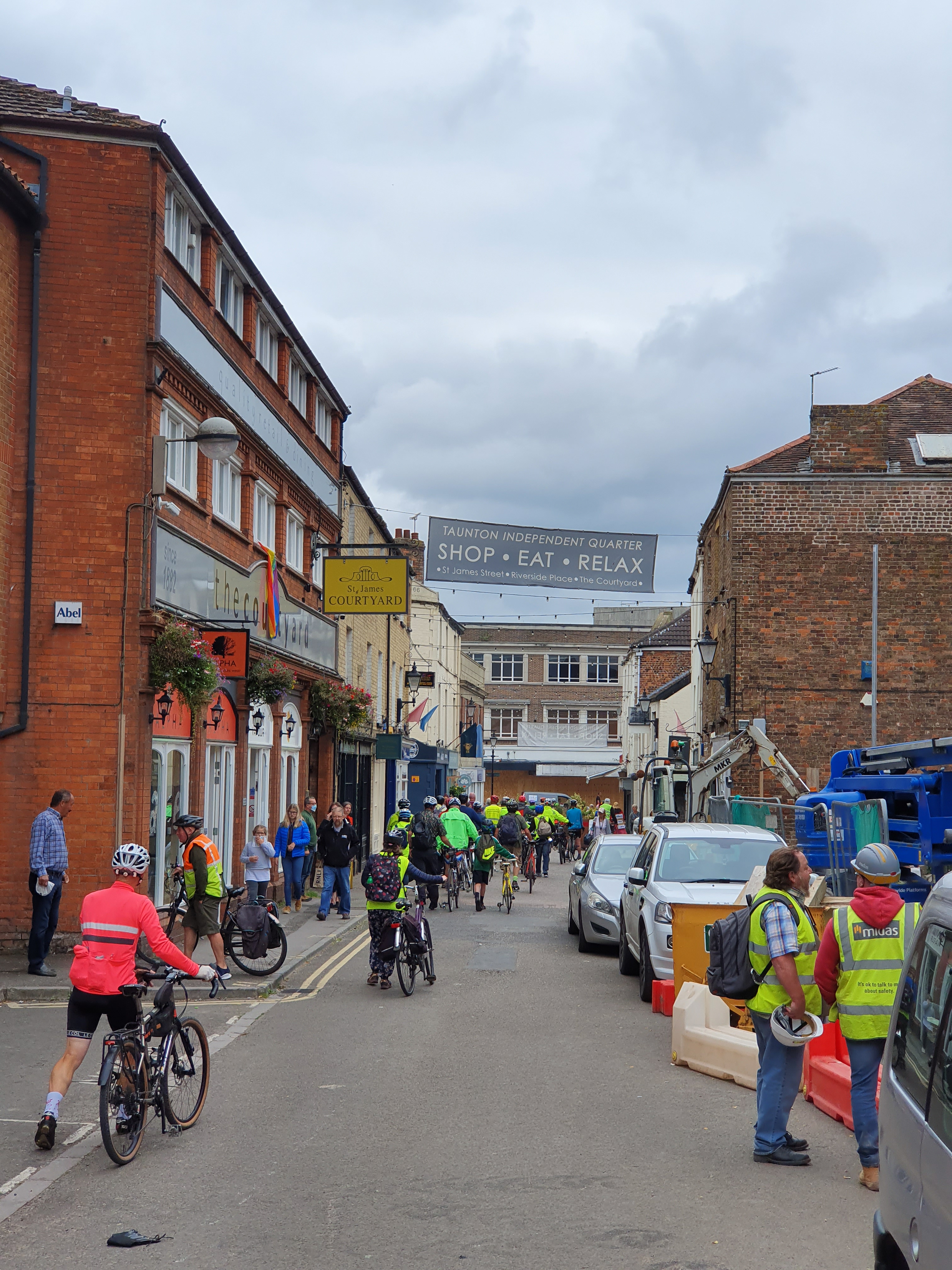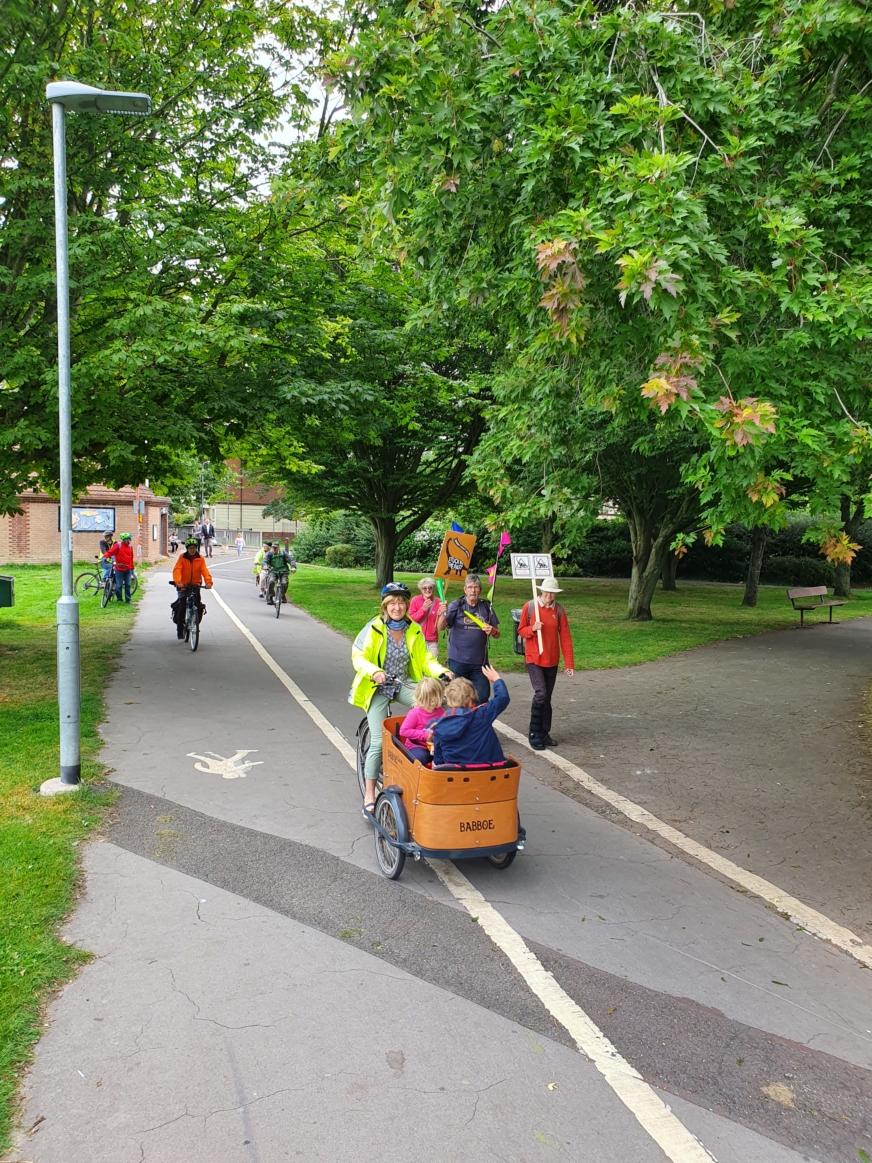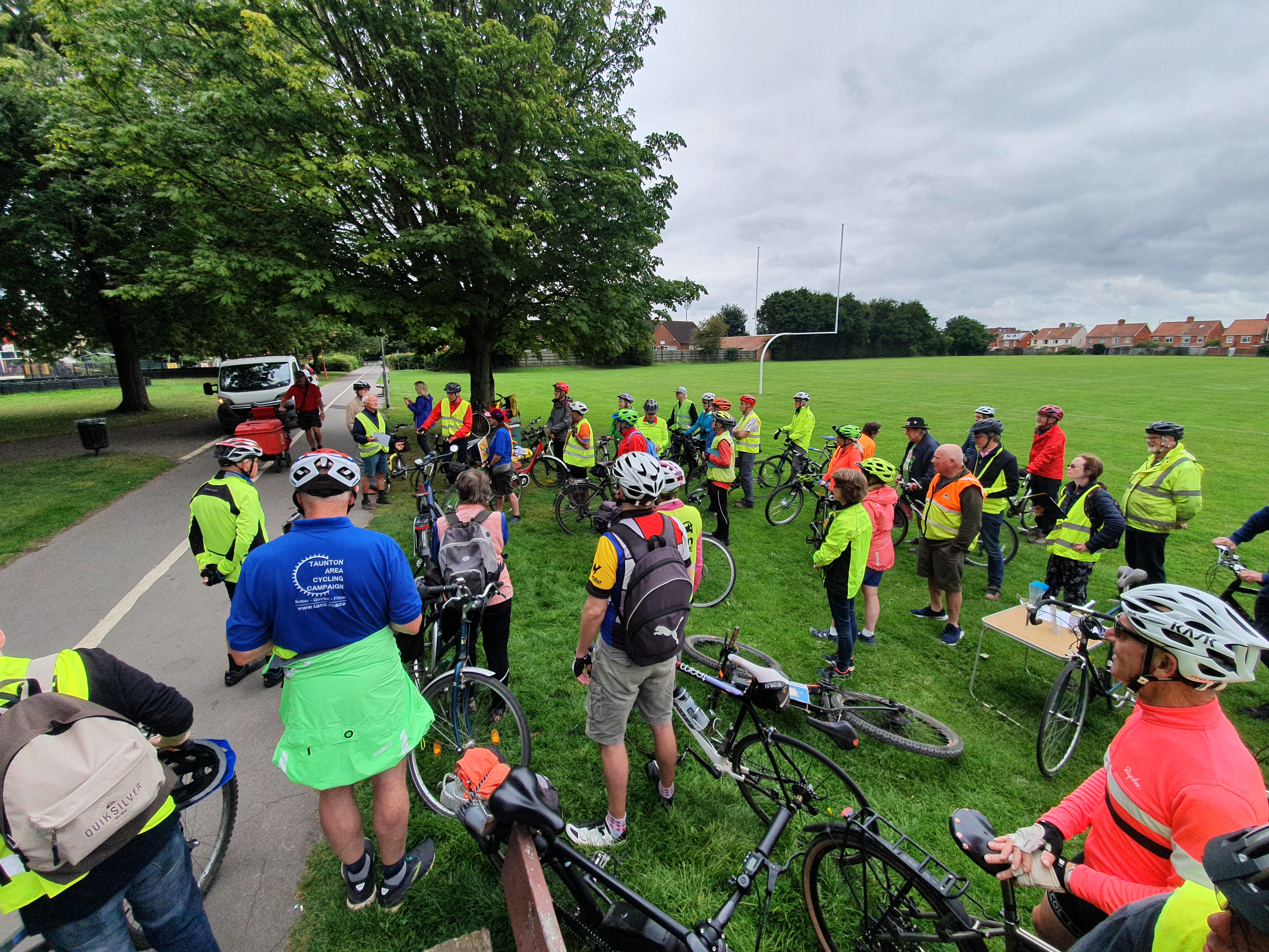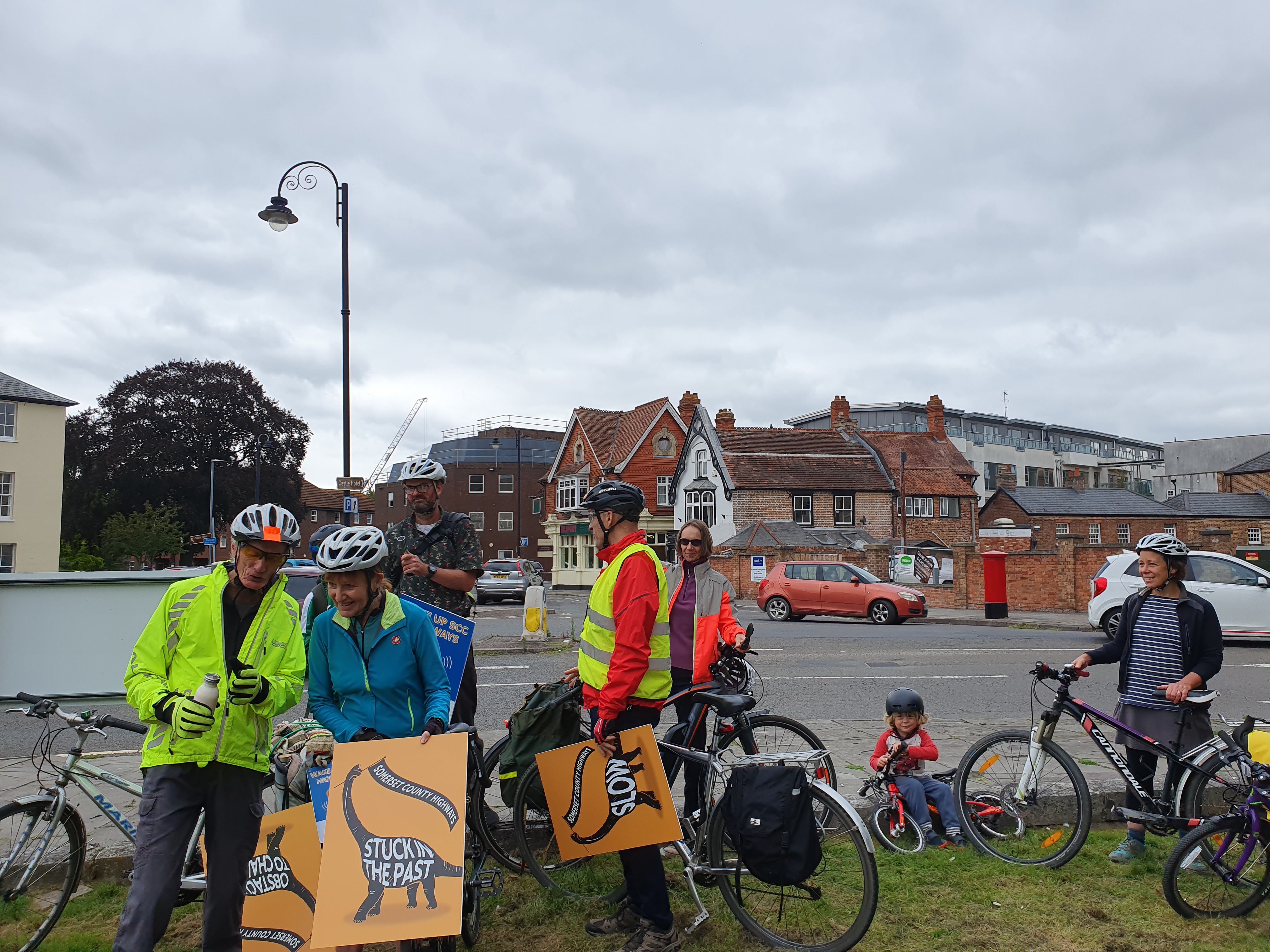 There was an amazing turnout of over 60 cyclists and pedestrians from all over Somerset that congregated outside Somerset County council to call for more action on more infrastructure for walking and cycling on Wednesday 1st Sep. Protesters called for more action. Somerset County Council has to stop dragging its feet with warm words but little tangible progress. Design and maintenance of cycling infrastructure needs to improve. Pedestrians should be considered in the construction and maintenance of pathways, and more roadways to be made accessible by walkers, cyclists, wheelchair users, horse riders, prams and mobility scooters.